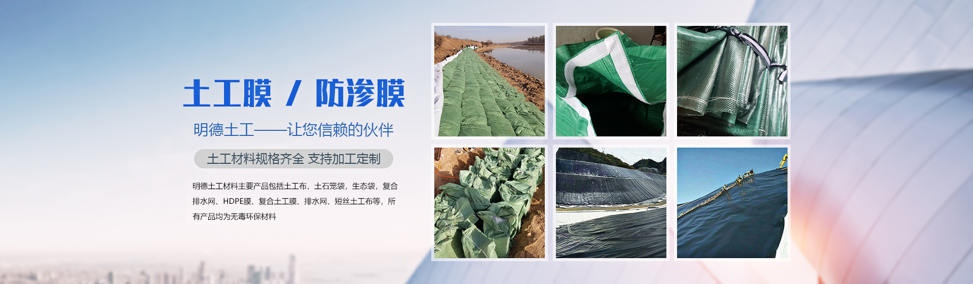 明德土工材料主要產品包括土工布,土石籠袋,生態袋,復合排水網、HDPE膜、復合土工膜、排水網、短絲土工布等,所有產品均為無毒環保材料,可廣泛應用于:1.環境修復工程(糧食基地土壤改良、工業場地、礦業、水體等工程、蔬菜大棚,養殖,種植等)